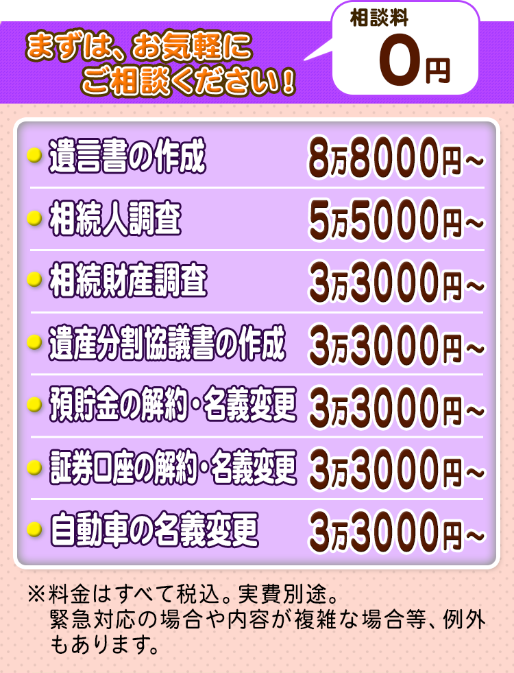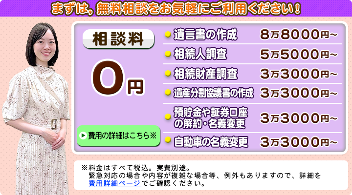 相続手続きの相談は原則無料で承りますので、安心してお問い合わせください。