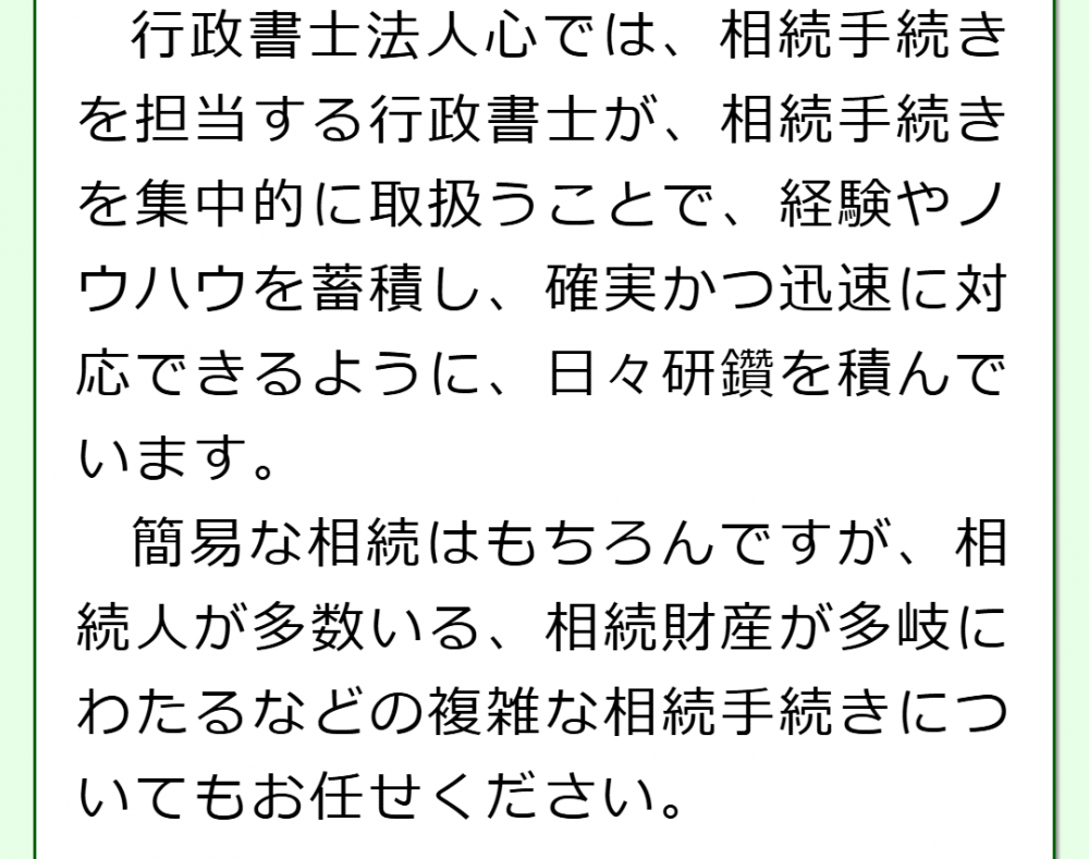 相談者の方の相続手続きがスムーズに進むよう、当法人の行政書士からアドバイスさせていただきます。