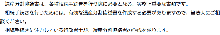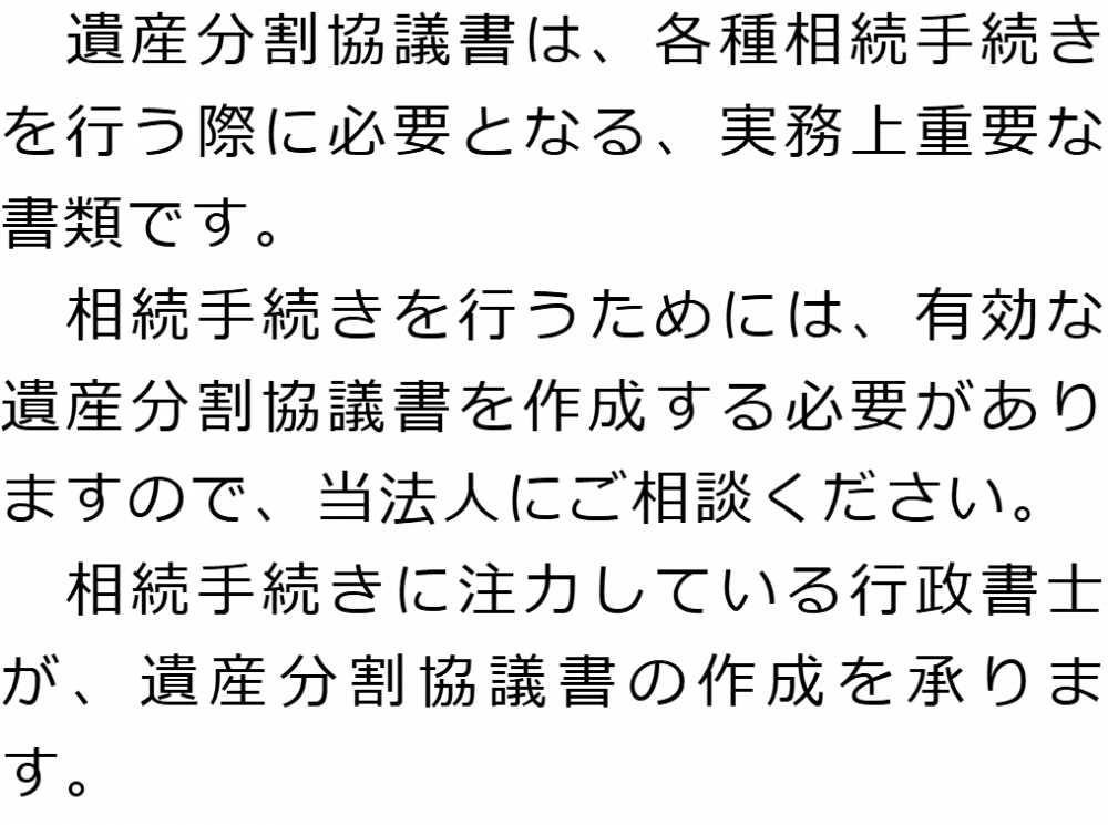 トップ業務内容遺産分割協議書の作成 階層構造▼ 業務内容(目次) 遺産分割協議書の作成 業務内容(目次)業務内容トップ行政書士法人心の業務内容遺言遺産整理相続人調査相続財産調査遺産分割協議書の作成預金・貯金の解約・名義変更証券口座の解約・名義変更自動車の名義変更心グループのその他の業務内容家族信託・民事信託節税対策事業承継遺言の検認相続放棄限定承認遺産分割遺留分侵害額請求相続登記相続税申告相続税調査 受付時間 平日 9時~21時、土日祝 9時~18時 夜間・土日祝の相談も対応します (要予約) 所在地 〒243-0018 神奈川県厚木市中町3-12-1厚木国際ビル6F 0120-2403-39 お問合せ・アクセス・地図