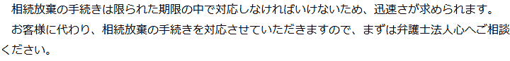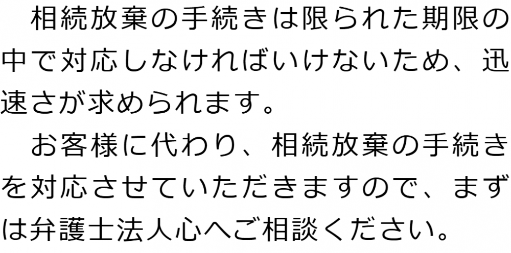トップ業務内容相続放棄 階層構造▼ 業務内容(目次) 相続放棄 業務内容(目次)業務内容トップ行政書士法人心の業務内容遺言遺産整理相続人調査相続財産調査遺産分割協議書の作成預金・貯金の解約・名義変更証券口座の解約・名義変更自動車の名義変更心グループのその他の業務内容家族信託・民事信託節税対策事業承継遺言の検認相続放棄限定承認遺産分割遺留分侵害額請求相続登記相続税申告相続税調査 受付時間 平日 9時~21時、土日祝 9時~18時 夜間・土日祝の相談も対応します (要予約) 所在地 〒243-0018 神奈川県厚木市中町3-12-1厚木国際ビル6F 0120-2403-39 お問合せ・アクセス・地図