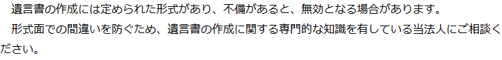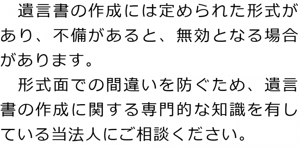 トップ業務内容遺言 階層構造▼ 業務内容(目次) 遺言 業務内容(目次)業務内容トップ行政書士法人心の業務内容遺言遺産整理相続人調査相続財産調査遺産分割協議書の作成預金・貯金の解約・名義変更証券口座の解約・名義変更自動車の名義変更心グループのその他の業務内容家族信託・民事信託節税対策事業承継遺言の検認相続放棄限定承認遺産分割遺留分侵害額請求相続登記相続税申告相続税調査 受付時間 平日 9時~21時、土日祝 9時~18時 夜間・土日祝の相談も対応します (要予約) 所在地 〒243-0018 神奈川県厚木市中町3-12-1厚木国際ビル6F 0120-2403-39 お問合せ・アクセス・地図