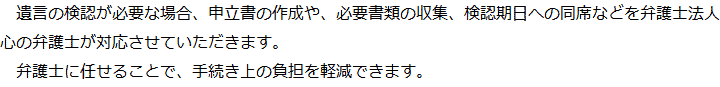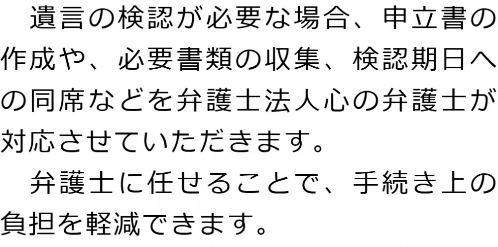 トップ業務内容遺言の検認 階層構造▼ 業務内容(目次) 遺言の検認 業務内容(目次)業務内容トップ行政書士法人心の業務内容遺言遺産整理相続人調査相続財産調査遺産分割協議書の作成預金・貯金の解約・名義変更証券口座の解約・名義変更自動車の名義変更心グループのその他の業務内容家族信託・民事信託節税対策事業承継遺言の検認相続放棄限定承認遺産分割遺留分侵害額請求相続登記相続税申告相続税調査 受付時間 平日 9時~21時、土日祝 9時~18時 夜間・土日祝の相談も対応します (要予約) 所在地 〒243-0018 神奈川県厚木市中町3-12-1厚木国際ビル6F 0120-2403-39 お問合せ・アクセス・地図